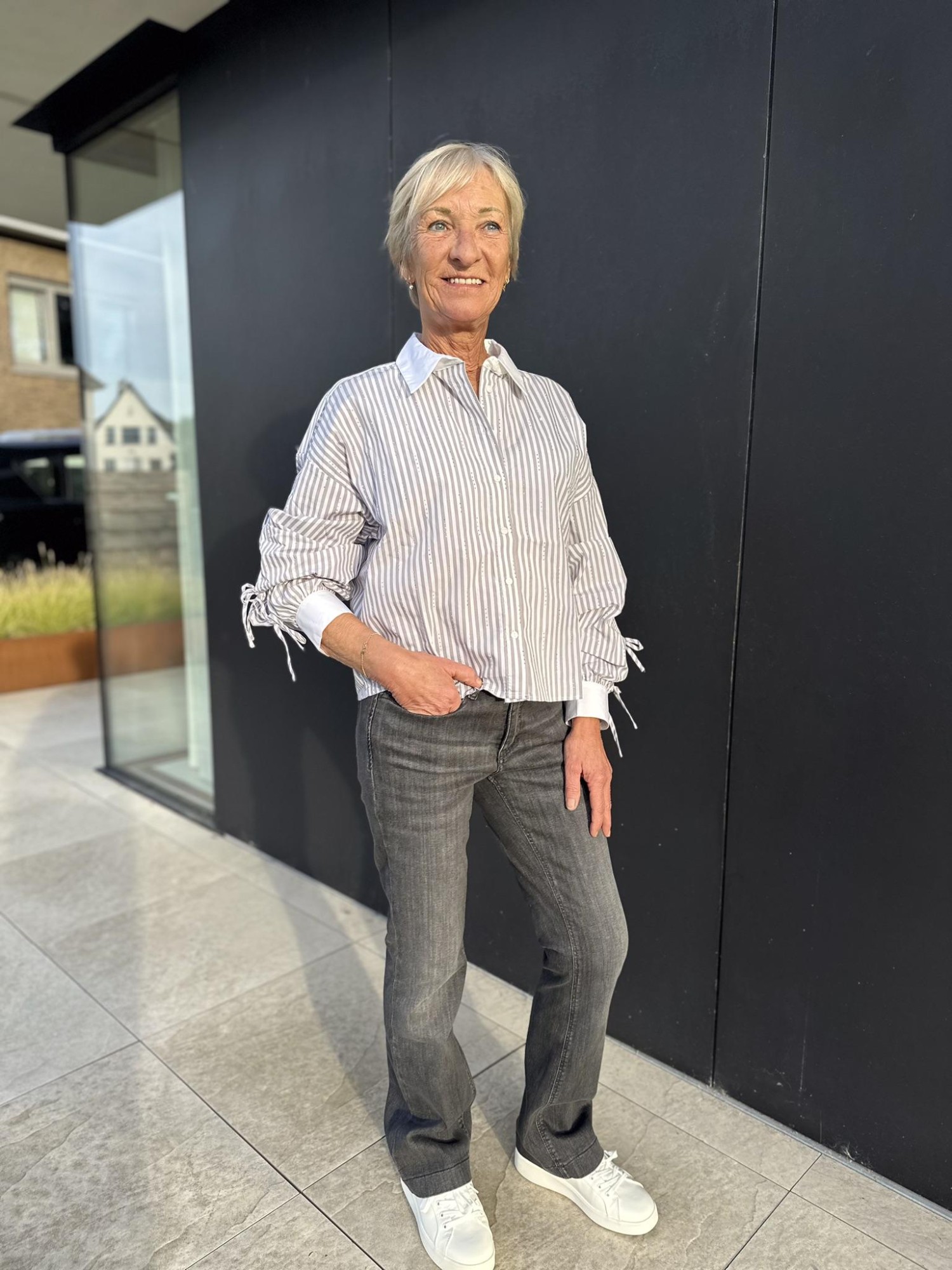 Blouse cropped stripes rhinestones
