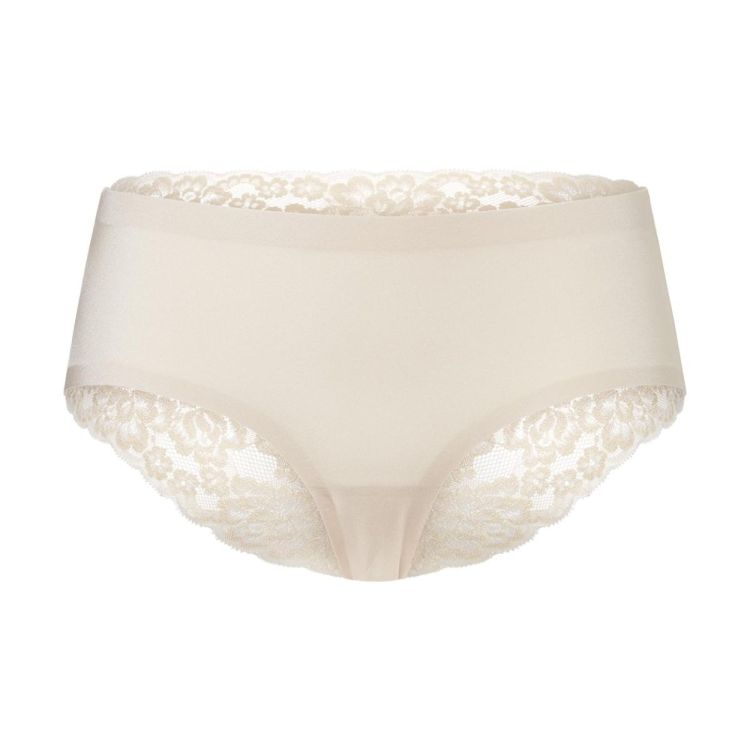 - Model: hipster met kanten achterzijde, onzichtbaar door de speciaal geplakte naden met flockafwerking (kruipt niet omhoog), vormvast, kleurvast en slijtvast, kreukherstellend. Katoenen kruisje.