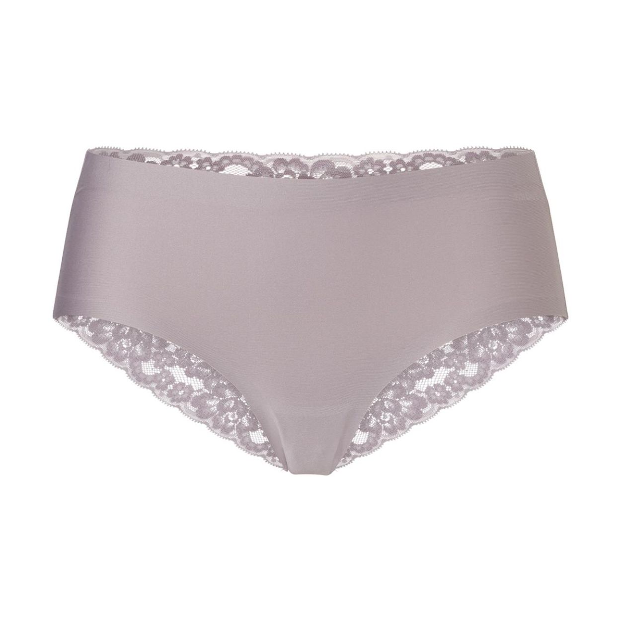 - Model: hipster met kanten achterzijde, onzichtbaar door de speciaal geplakte naden met flockafwerking (kruipt niet omhoog), vormvast, kleurvast en slijtvast, kreukherstellend. Katoenen kruisje.